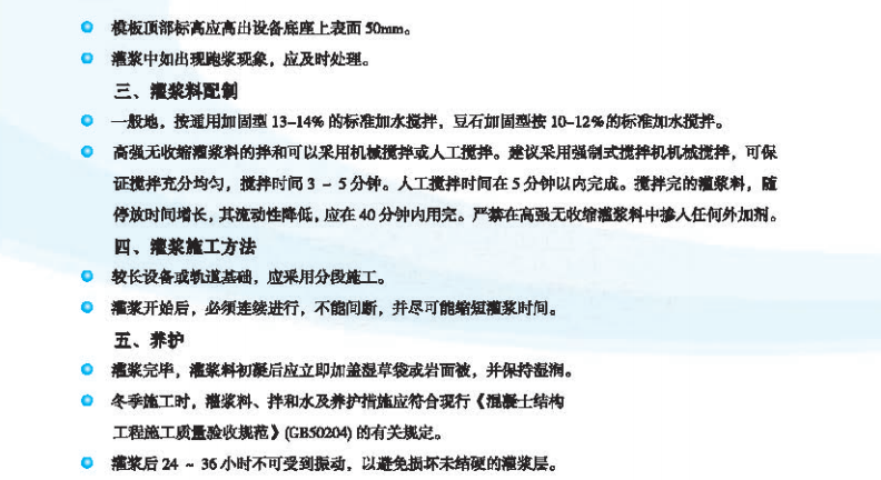 3、灌漿后24-36小時不可受到振動,以避免損壞未結硬的灌漿層。